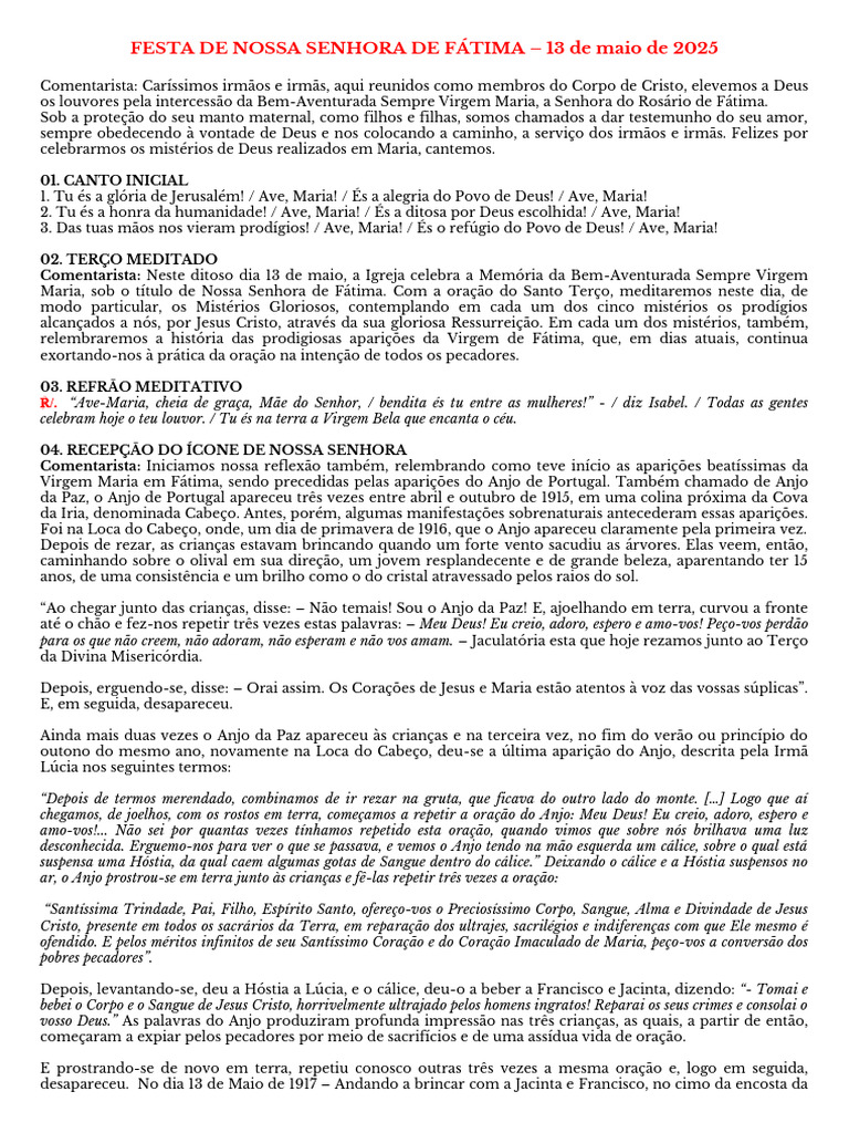 FESTA DE NOSSA SENHORA DE FÁTIMA – 13 de maio de 2025