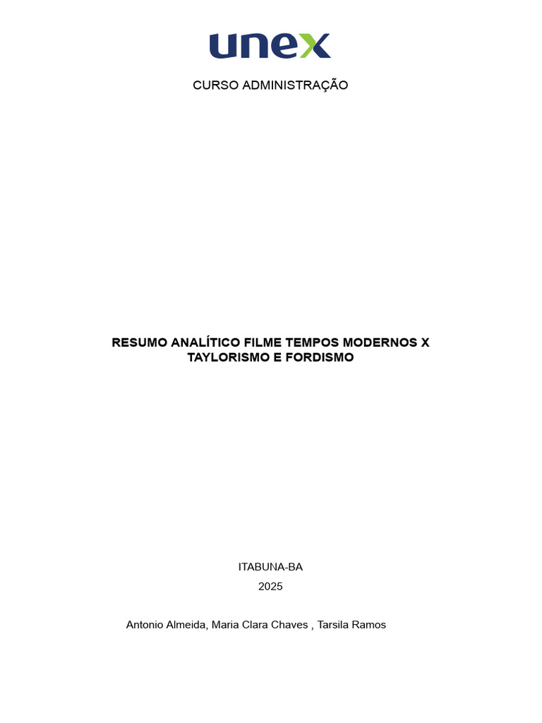 RESUMO ANALÍTICO FILME TEMPOS MODERNOS X
