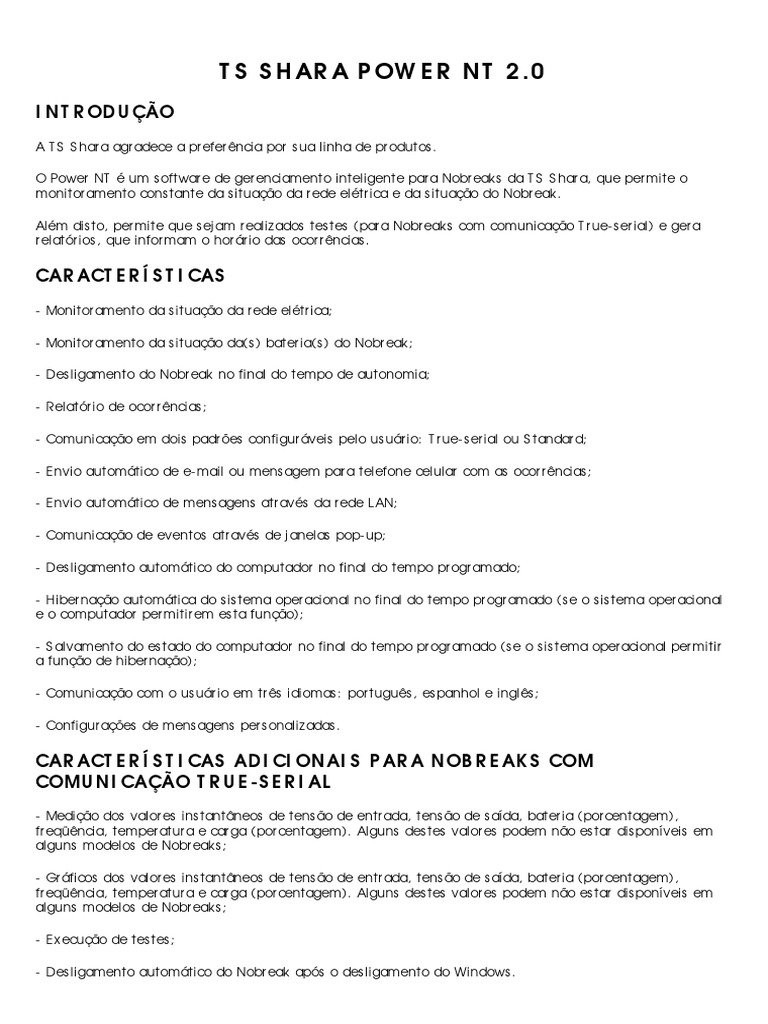 O Power NT é um s oftwar e de ger enciamento inteligente par a Nobr eaks da T S S har a, que per mite o