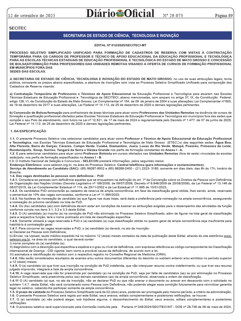 EDITAL Nº 012/2025/SECITECI-MT
