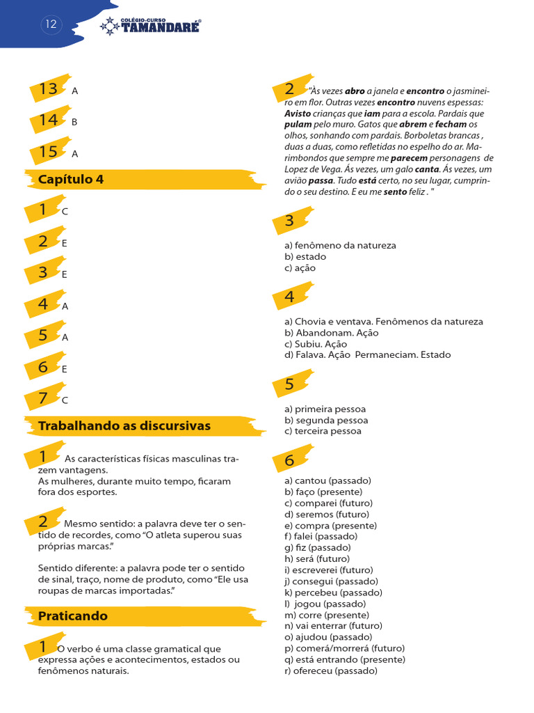 fenômenos naturais. r) ofereceu (passado)