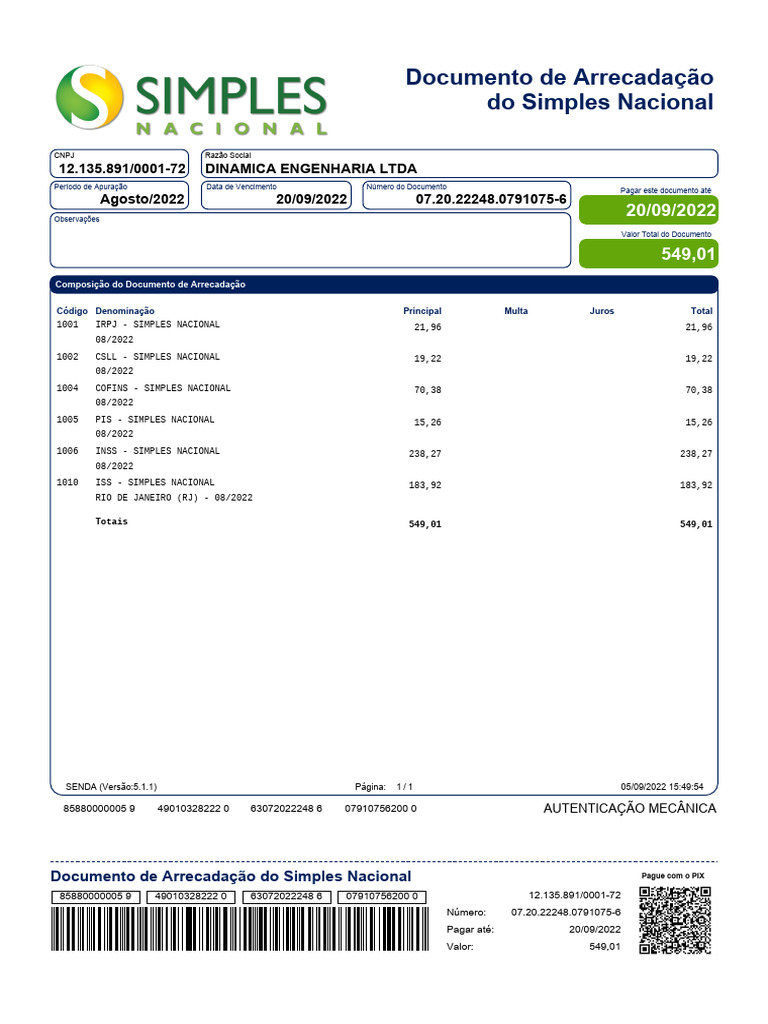 Pagar até: 20/09/2022