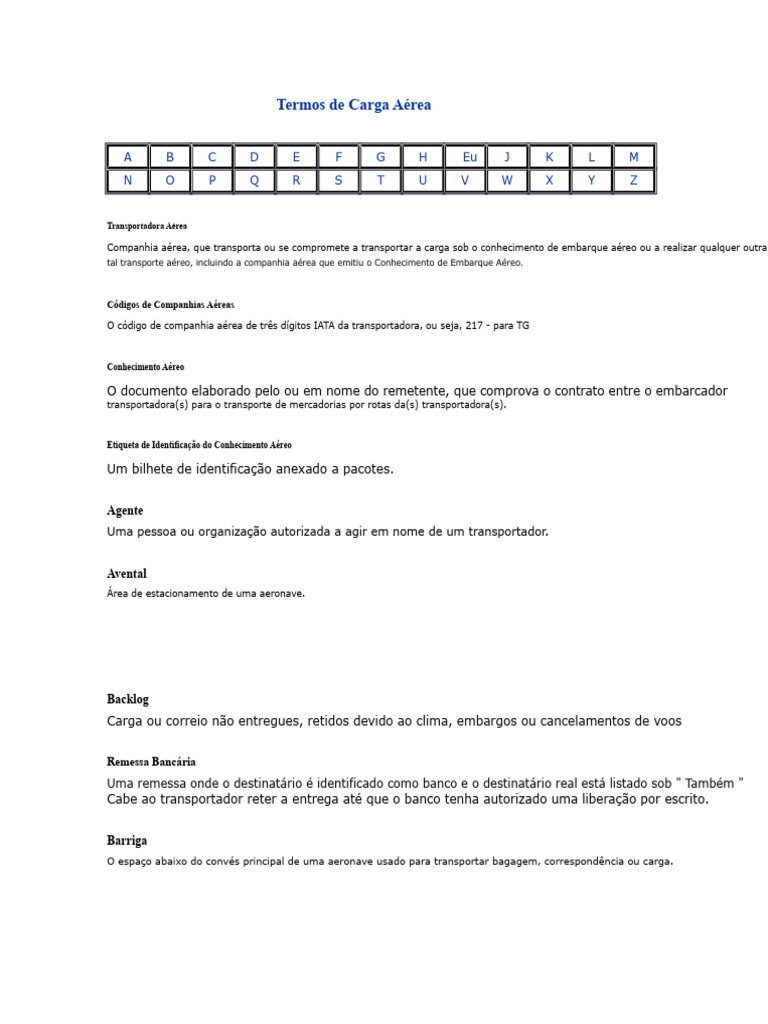 Termos de Carga Aérea