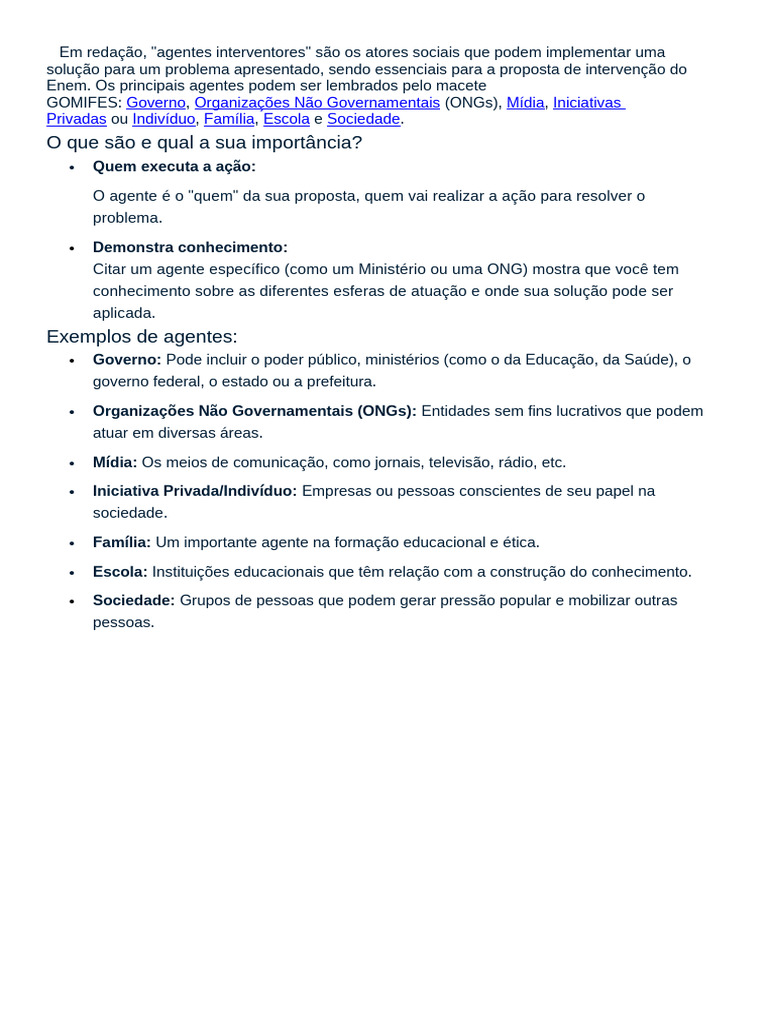 Em redação, "agentes interventores" são os atores sociais que podem implementar uma
