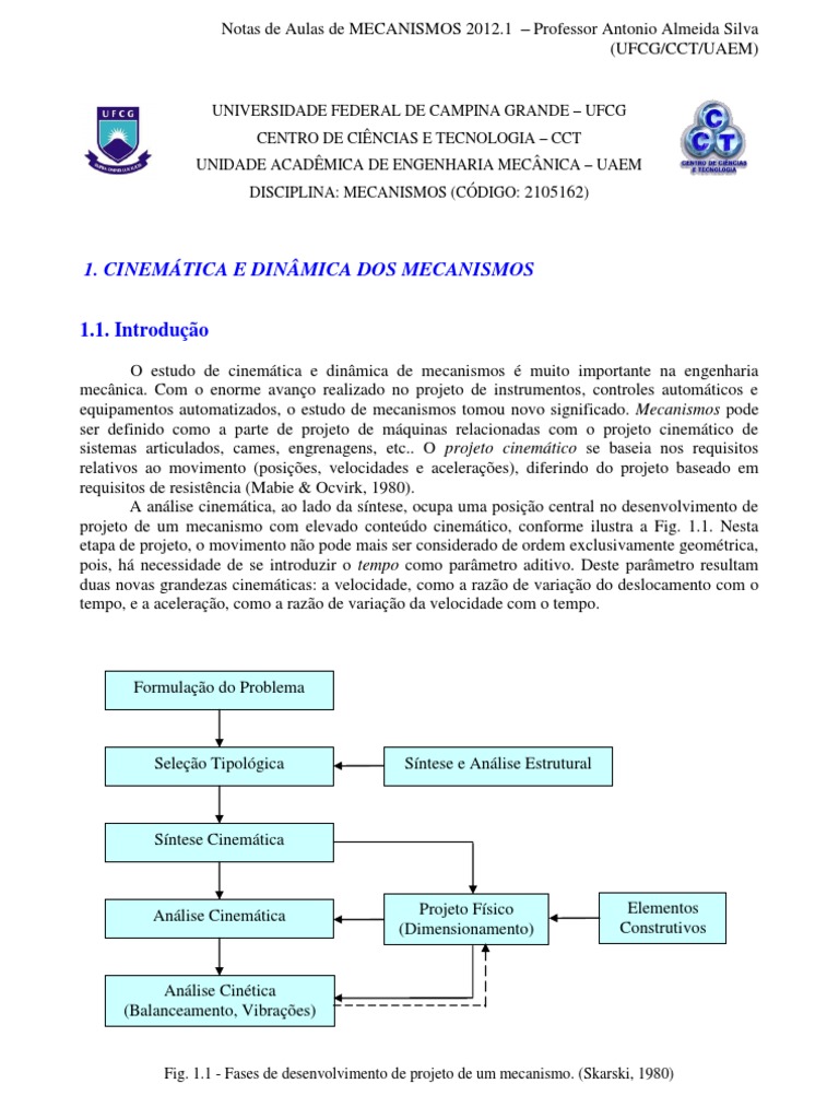 1. CINEMTICA E DINMICA DOS MECANISMOS 1.1. Introduo