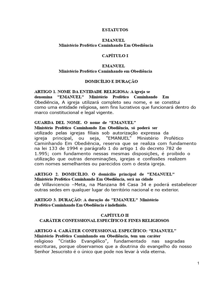 ARTIGO 1. NOME DA ENTIDADE RELIGIOSA: A igreja se