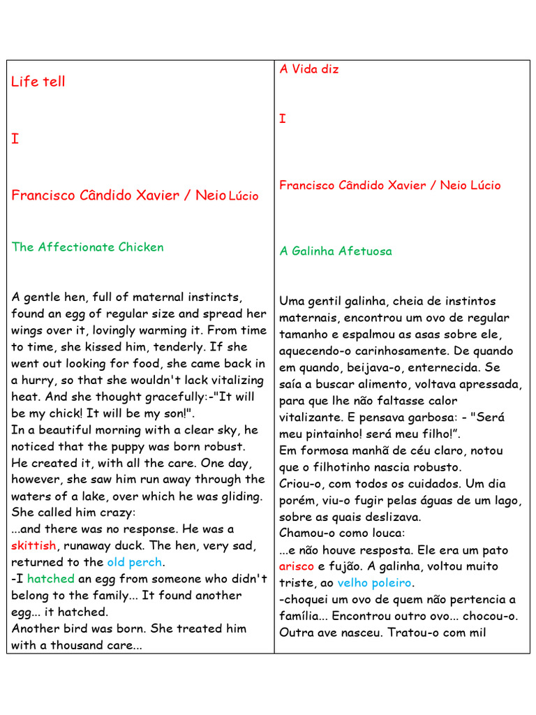 others. The chicken suffered a lot. Um dia, o corvinho voou, juntando-se a