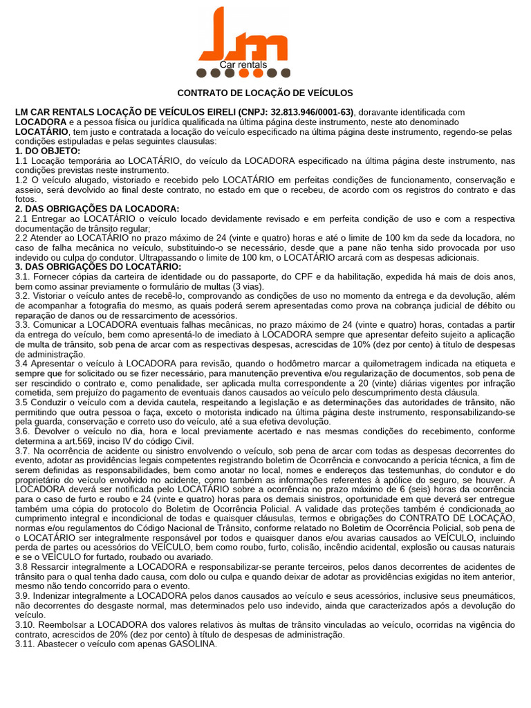 LM CAR RENTALS LOCAÇÃO DE VEÍCULOS EIRELI (CNPJ: 32.813.946/0001-63), doravante identificada com