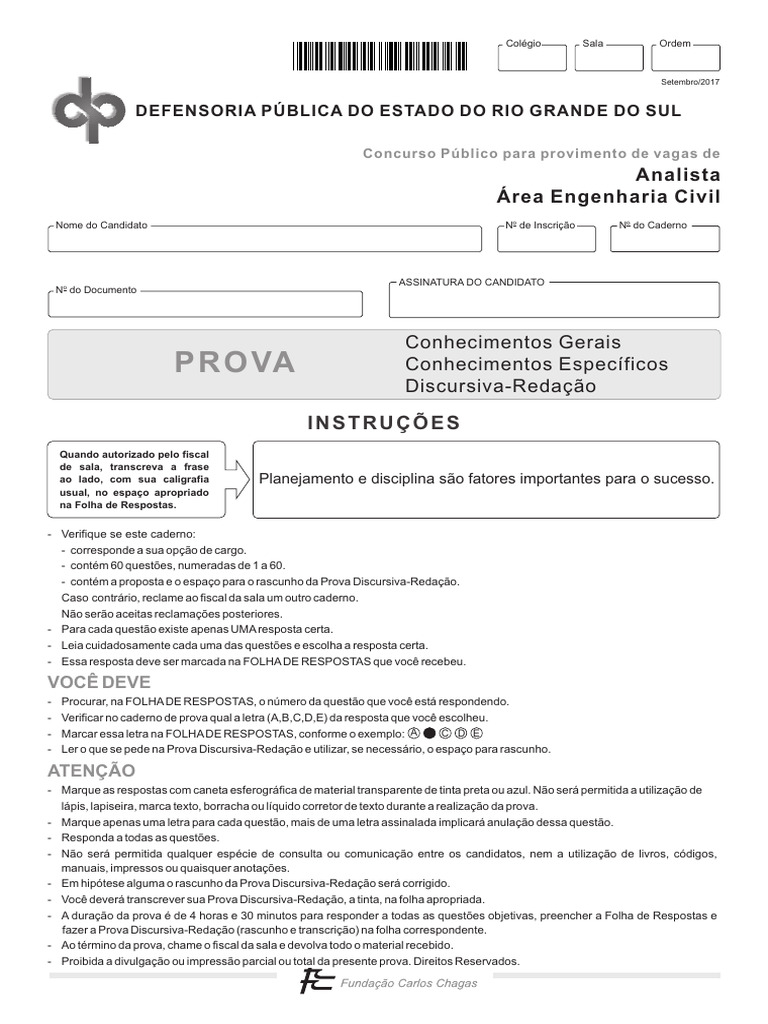 - Ao término da prova, chame o fiscal da sala e devolva todo o material recebido.