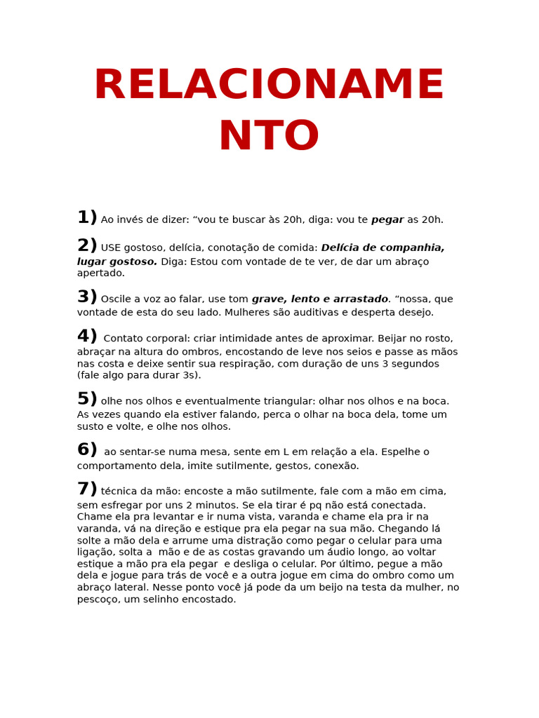 4) Contato corporal: criar intimidade antes de aproximar. Beijar no rosto,