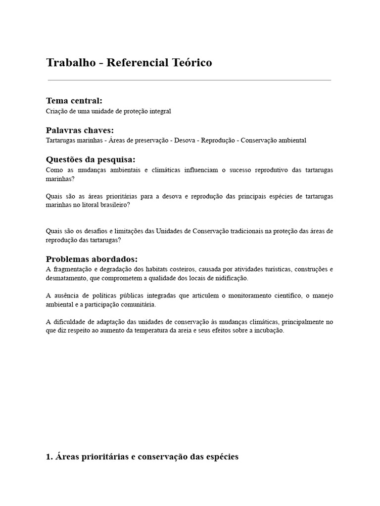 desovas, defendendo a delimitação de Unidades de Conservação (UCs) que assegurem a integridade