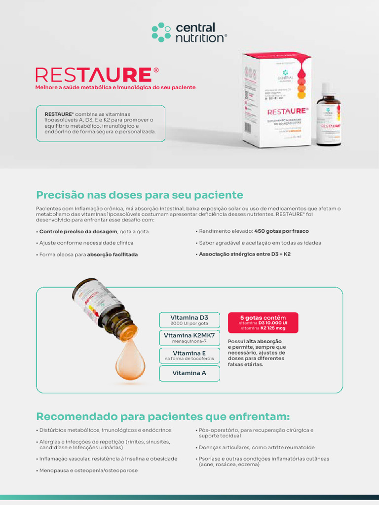 metabolismo das vitaminas lipossolúveis costumam apresentar deficiência desses nutrientes. RESTAURE® foi