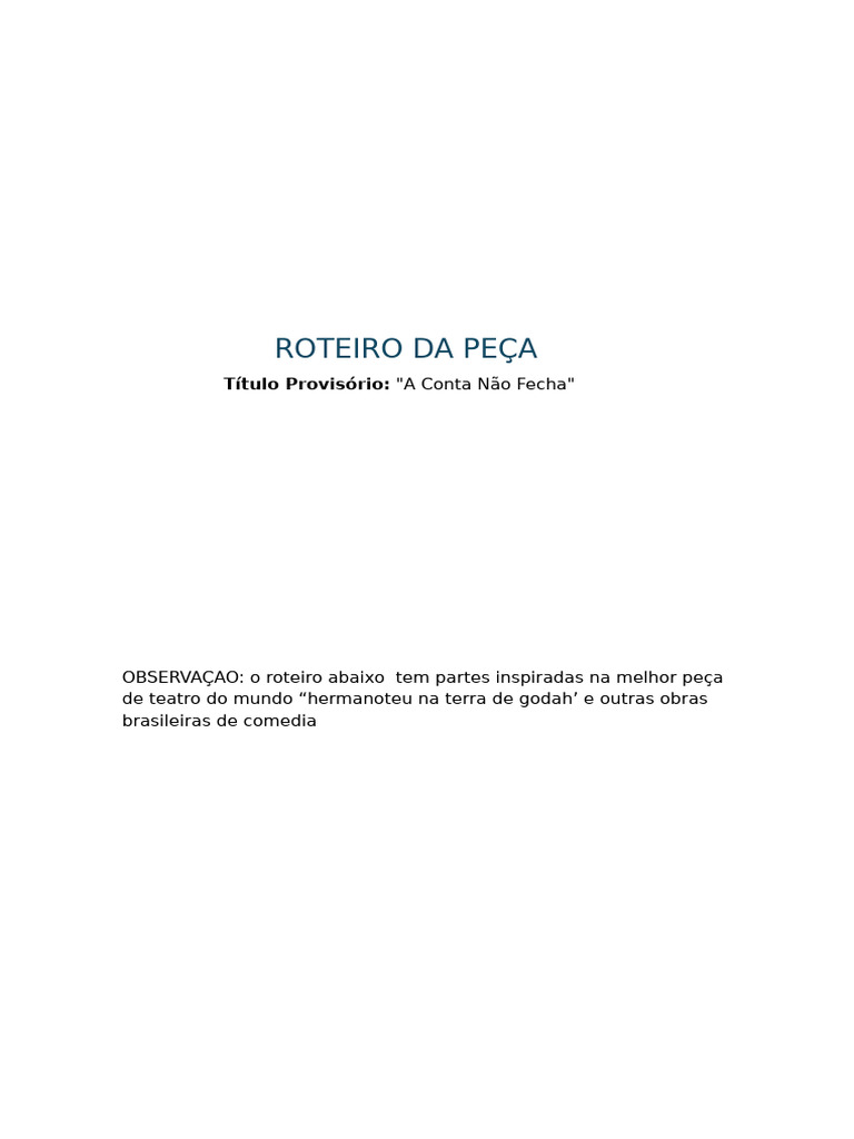 OBSERVAÇAO: o roteiro abaixo tem partes inspiradas na melhor peça
