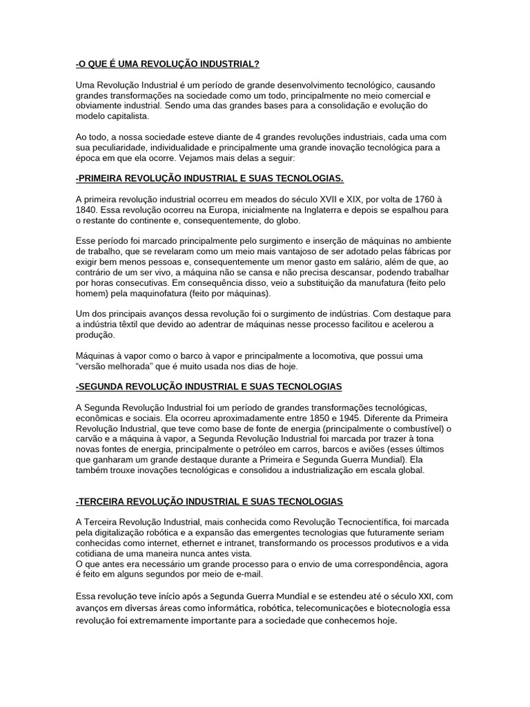 -PRIMEIRA REVOLUÇÃO INDUSTRIAL E SUAS TECNOLOGIAS.