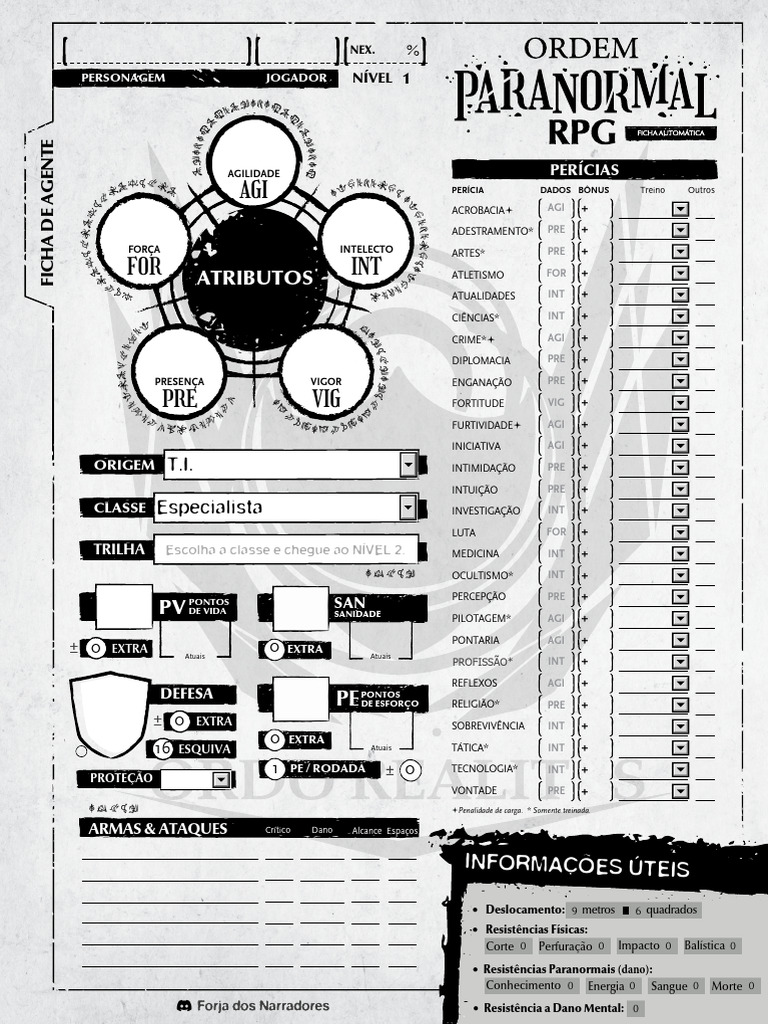 A ficha automática de Ordem Paranormal é apoiada pelas