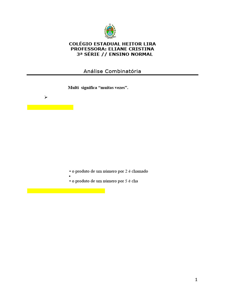 1) Use a árvore das possibilidades para resolver o seguinte problema: