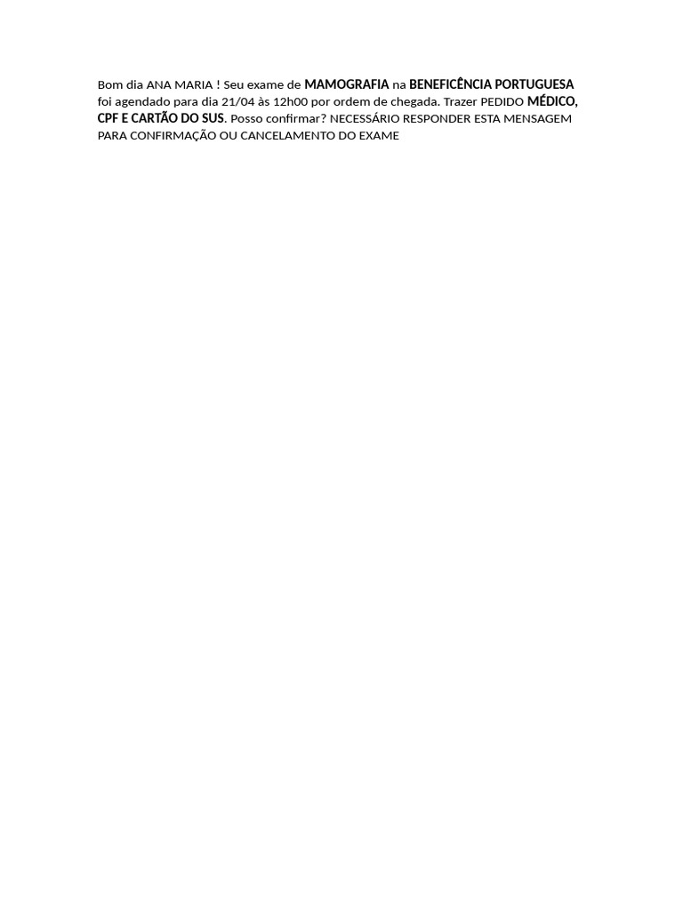 CPF E CARTÃO DO SUS. Posso confirmar? NECESSÁRIO RESPONDER ESTA MENSAGEM
