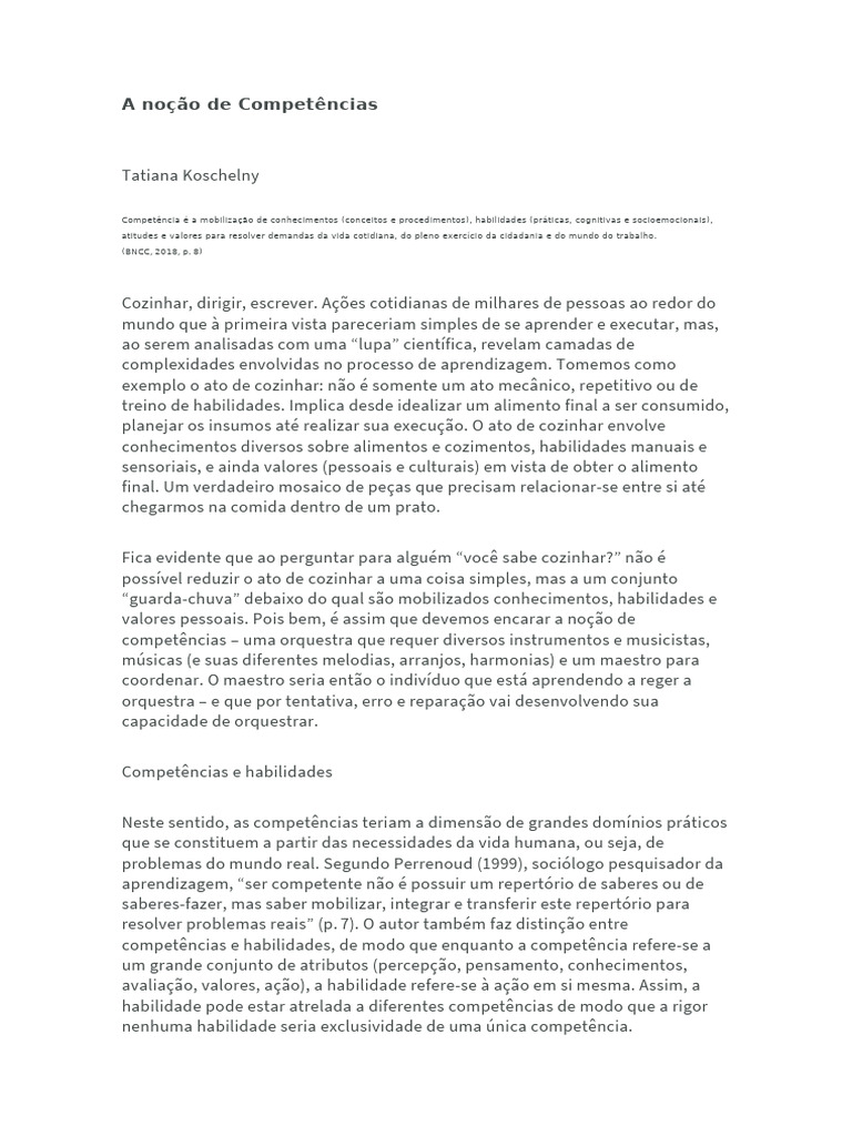 Competência é a mobilização de conhecimentos (conceitos e procedimentos), habilidades (práticas, cognitivas e socioemocionais),
