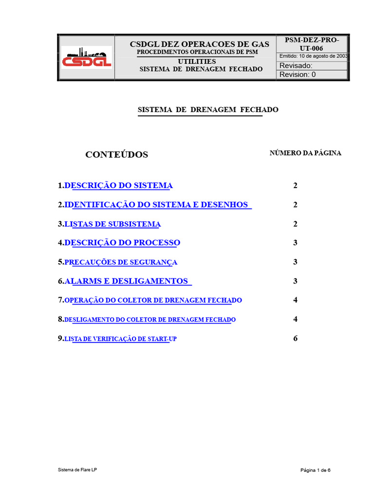 CSDGL DEZ OPERAÇÕES DE GÁS UT-006