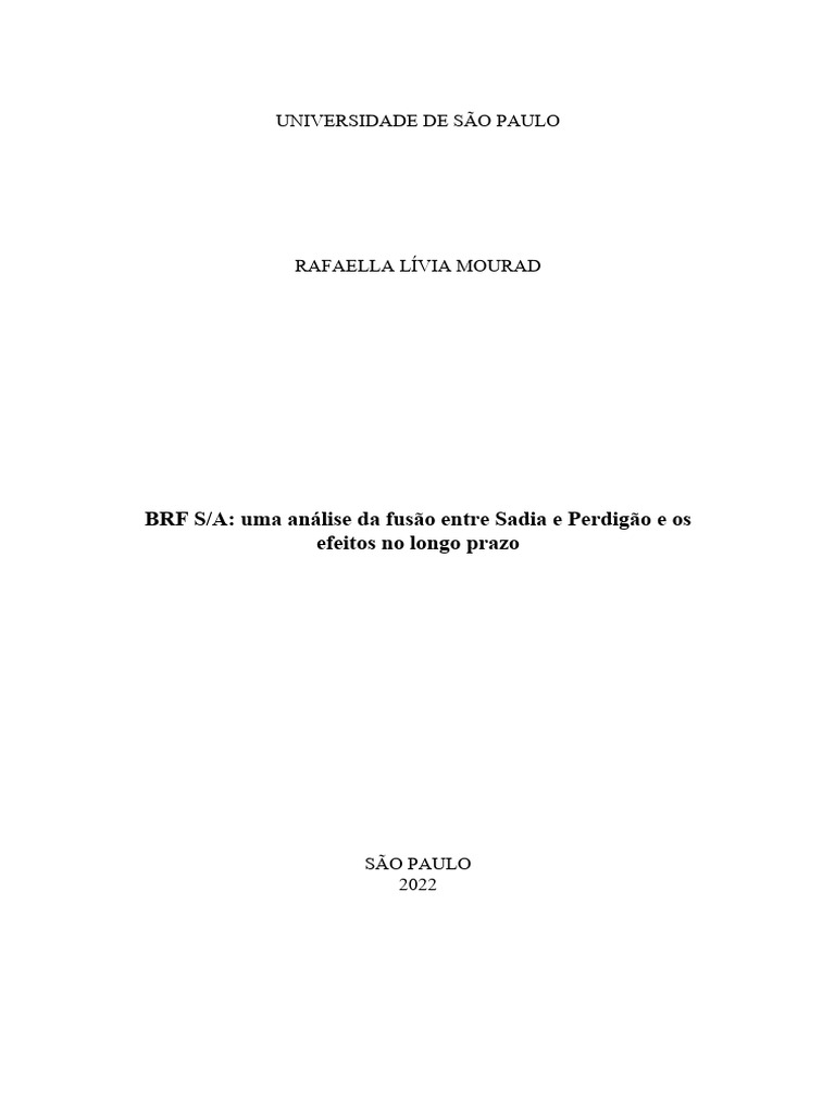 BRF S/A: uma análise da fusão entre Sadia e Perdigão e os efeitos no longo prazo - São