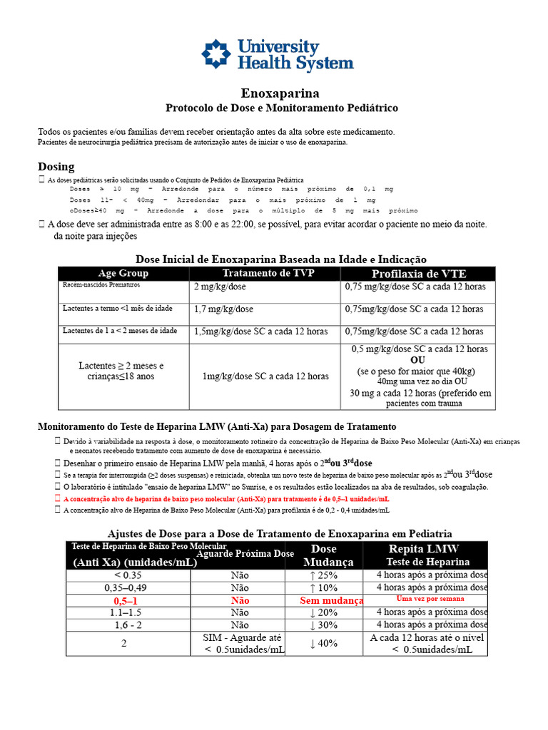 Pacientes de neurocirurgia pediátrica precisam de autorização antes de iniciar o uso de enoxaparina.