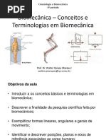 in Apontamentos Curso de Biomecnica do Movimento IST, 2004 Nota 1: A Mecnica o ramo da Fsica que analisa o movimento de um determinado sistema e o modo como a aplicao de foras pode alterar esse mesmo movimento. Nota 2: Um Sistema Biolgico pode ser o corpo humano, mas tambm um qualquer outro animal, organismo ou somente uma parte ou rgo destes.