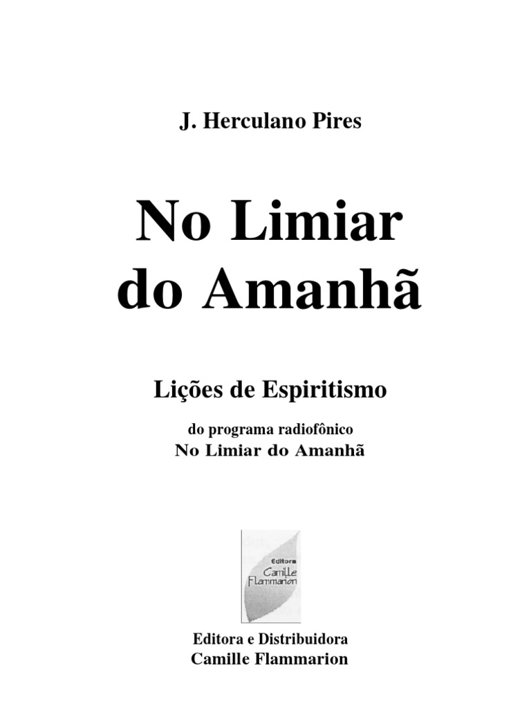A Editora e Distribuidora Camille Flammarion sente-se feliz em apresentar aos leitores a sua primeira obra, No Limiar do Amanh, com as belssimas e ricas lies do professor, jornalista, tradutor e filsofo J. Herculano Pires. Em linguagem simples, clara e objetiva, a obra fornecer ao leitor subsdios valiosos, que por certo enriquecero os seus conhecimentos sobre os mais diversos assuntos. Enfim, um livro que no deve faltar na biblioteca esprita. Detentor de uma das maiores culturas do sculo XX, J. Herculano Pires divulgou a Doutrina Esprita pela fala e pela escrita e o fez de maneira agradvel a todos. Ele falava como escrevia e escrevia como falava: com extrema simplicidade. Como Jesus nos recomendou: seja o nosso falar sim, sim; no, no. Que sejamos espritas como Herculano; que sejamos fiis aos ensinamentos de Allan Kardec como Herculano; que tenhamos amor Verdade como teve Herculano, na sua trajetria, aqui na Terra.