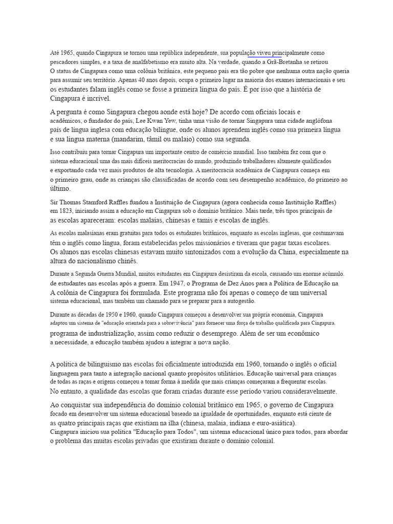 acadêmicos, o fundador do país, Lee Kwan Yew, tinha uma visão de tornar Singapura uma cidade anglófona