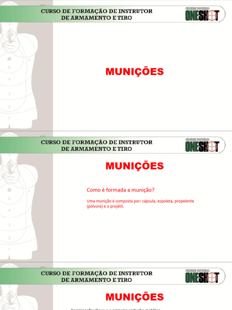 Uma munição é composta por: cápsula, espoleta, propelente