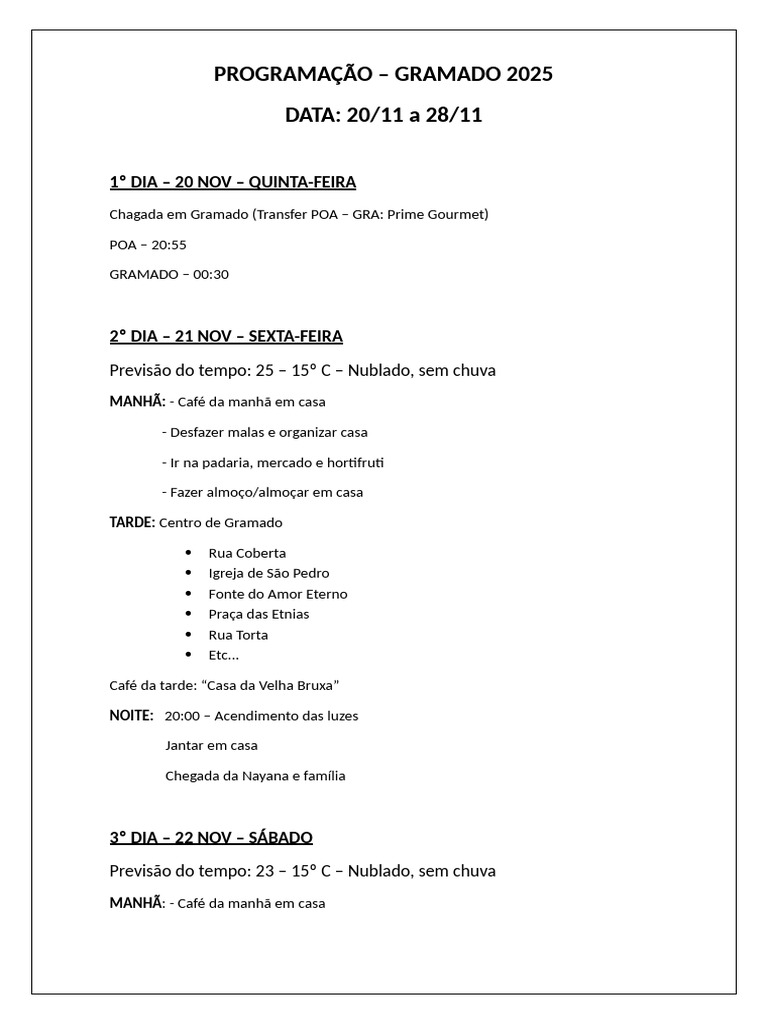 1º DIA – 20 NOV – QUINTA-FEIRA