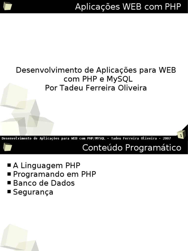 Desenvolvimento de Aplicações para WEB com PHP/MYSQL - Tadeu Ferreira Oliveira - 2007