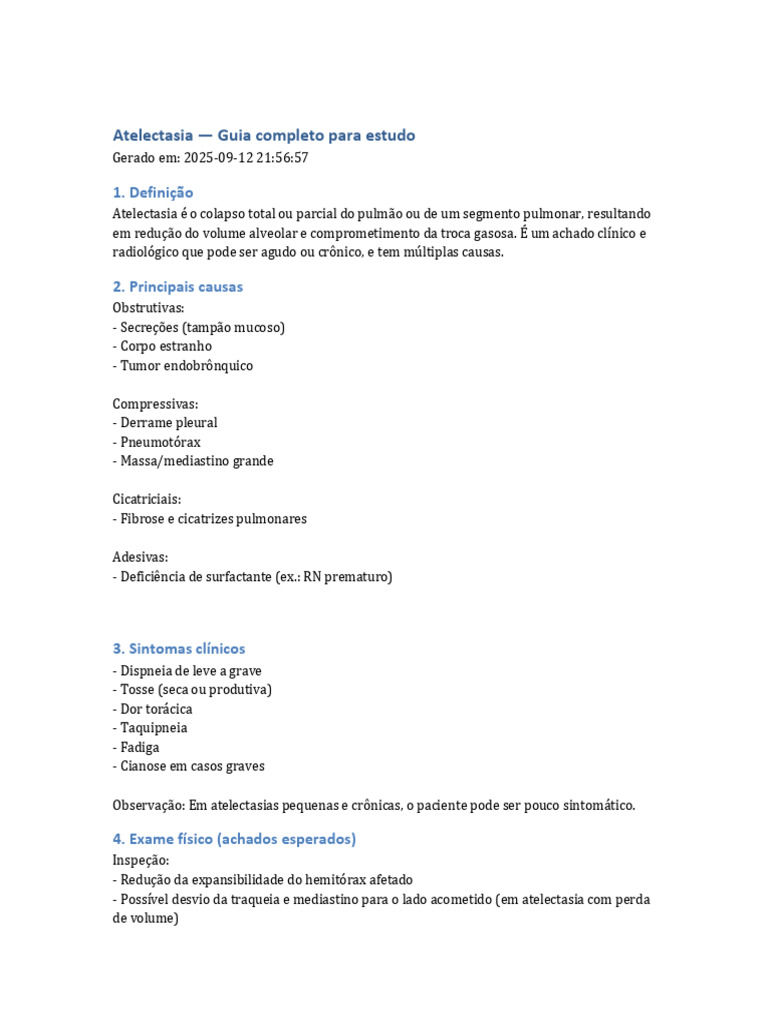 Observação: Em atelectasias pequenas e crônicas, o paciente pode ser pouco sintomático.