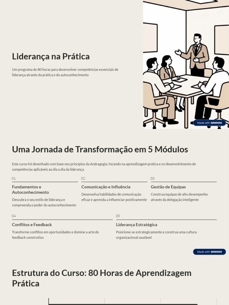 Cada módulo equilibra teoria e prática, com exercícios aplicados que permitem aos participantes desenvolver competências reais de