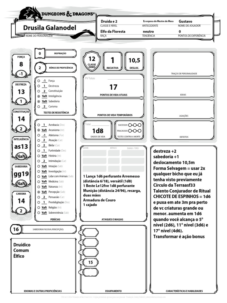 NOME DO PERSONAGEM RAÇA TENDÊNCIA PONTOS DE EXPERIÊNCIA