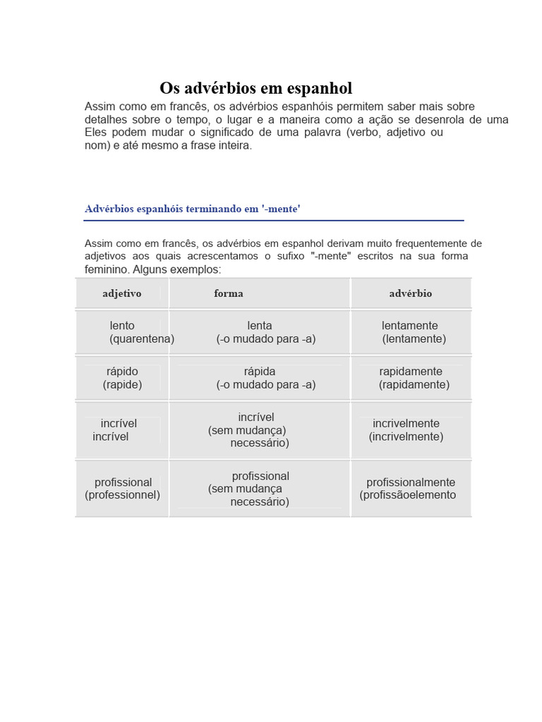 comment algo é feito. Em espanhol, esses advérbios seguem o