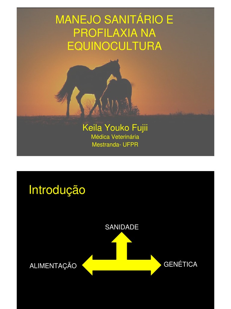 ...controle de parasitas Uso do anti-helmnticos sempre que houver sintomatologia clnica, mortalidade por verminose ou deteco de resultados elevados em termos de exames de fezes