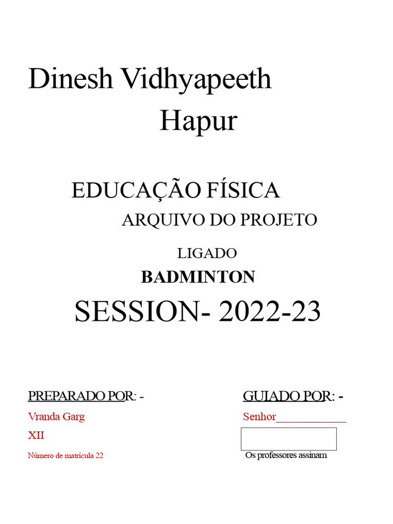 Isto é para certificar que Vranda Garg, uma aluna da classe XII Ciências