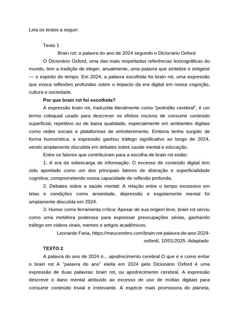 norma padrão da língua portuguesa sobre o tema BRAIN ROT: O IMPACTO DO
