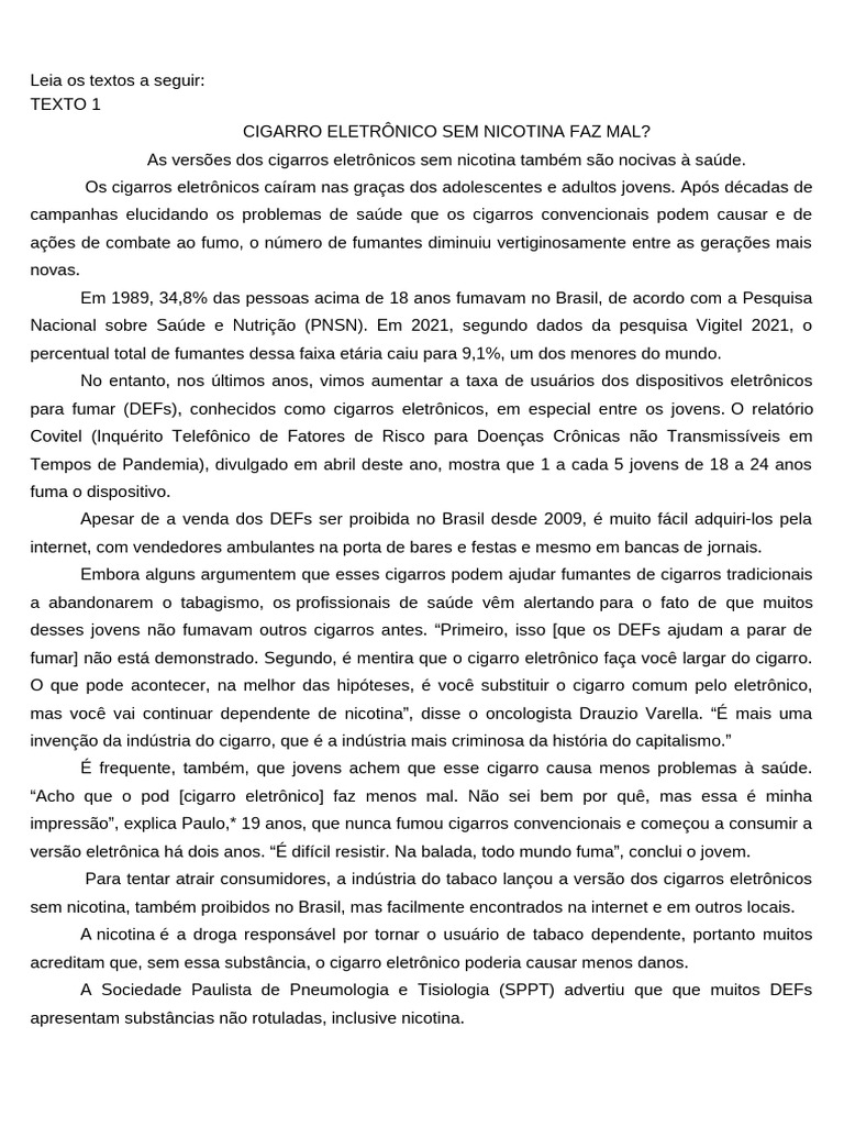 o tema Os impactos dos cigarros eletrônicos na saúde dos jovens brasileiros, apresentando