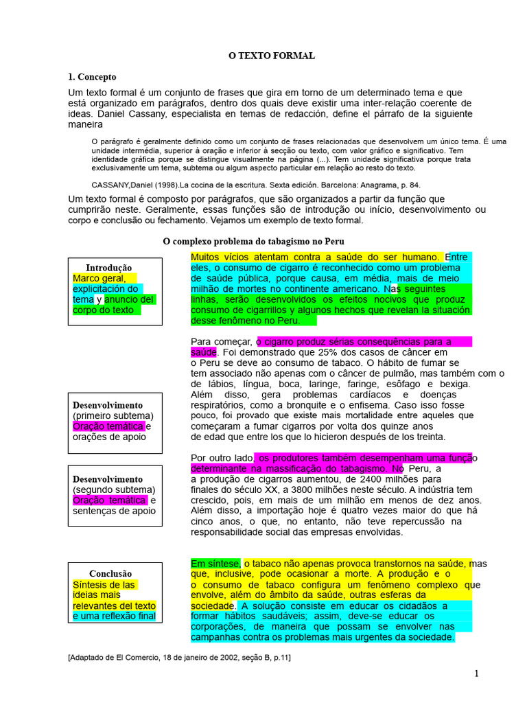 Esquema tomado de TAVERA, Elizabeth e Paola CÉPEDA (2007). Redação de textos formais. Manual de