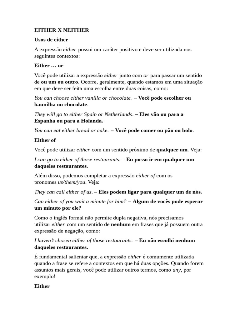 A expressão either possui um caráter positivo e deve ser utilizada nos