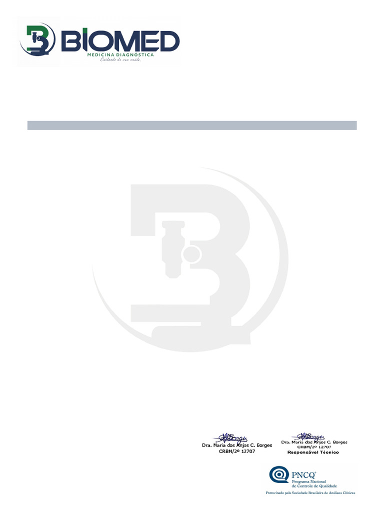 Os resultados dos exames laboratoriais sofrem influência de estado fisiológico,patológico e uso de medicação,devendo ser avaliado e interpretado pelo médico.