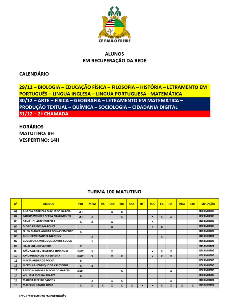 02 PEDRO HIGOR ARAUJO SILVA X X X X X X X X X X X X REC EM REDE