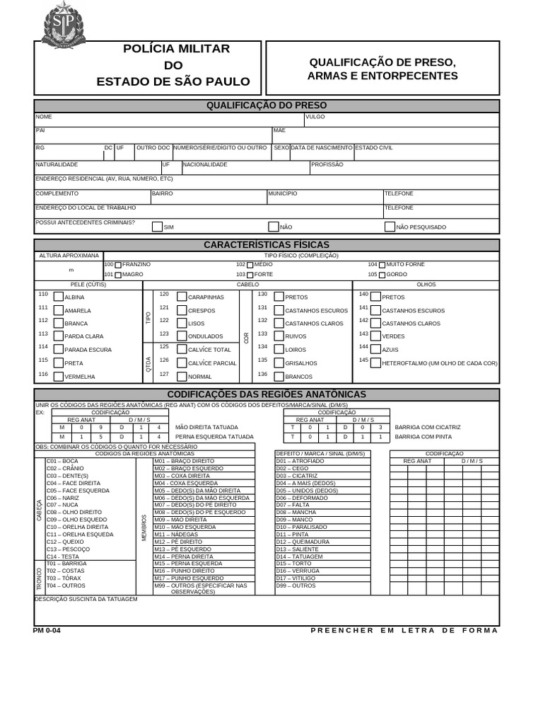 PM 0-04 PREENCHER EM LETRA DE FORMA