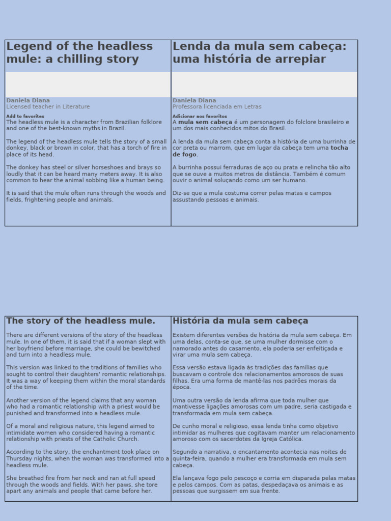 There are different versions of the story of the headless Existem diferentes versões de história da mula sem cabeça. Em