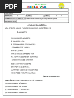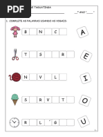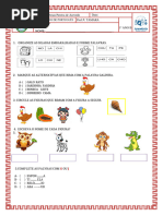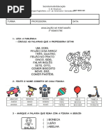 O documento solicita que o usuário escreva o nome das figuras apresentadas e crie uma frase utilizando uma delas. Além disso, menciona uma seção de leitura, mas não fornece detalhes sobre o conteúdo dessa leitura.