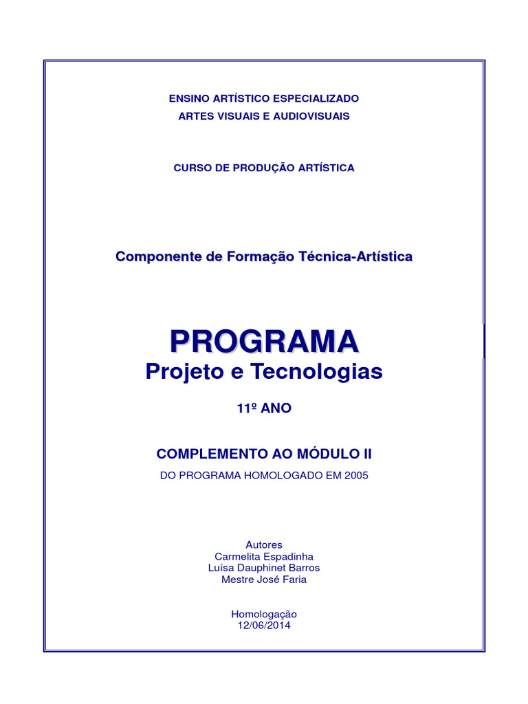 Programa de Projeto e Tecnologias – 11º ano (complemento ao módulo II)