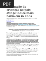 vacinal geral no país, especialmente no âmbito infantil. Segundo especialistas, os