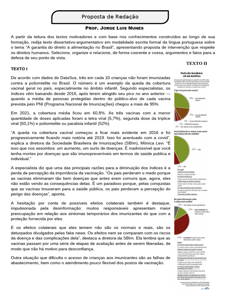 o tema “A garantia do direito à alimentação no Brasil”, apresentando proposta de intervenção que respeite