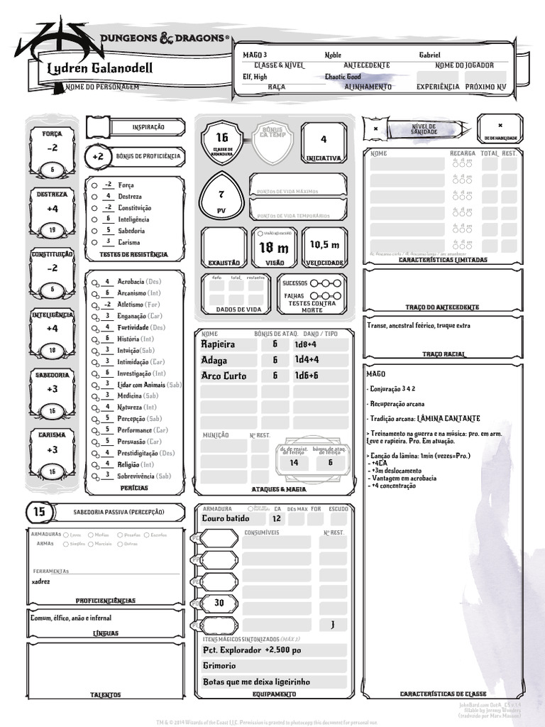 Lydren Galanodell CLASSE & NÍVEL ANTECEDENTE NOME DO JOGADOR